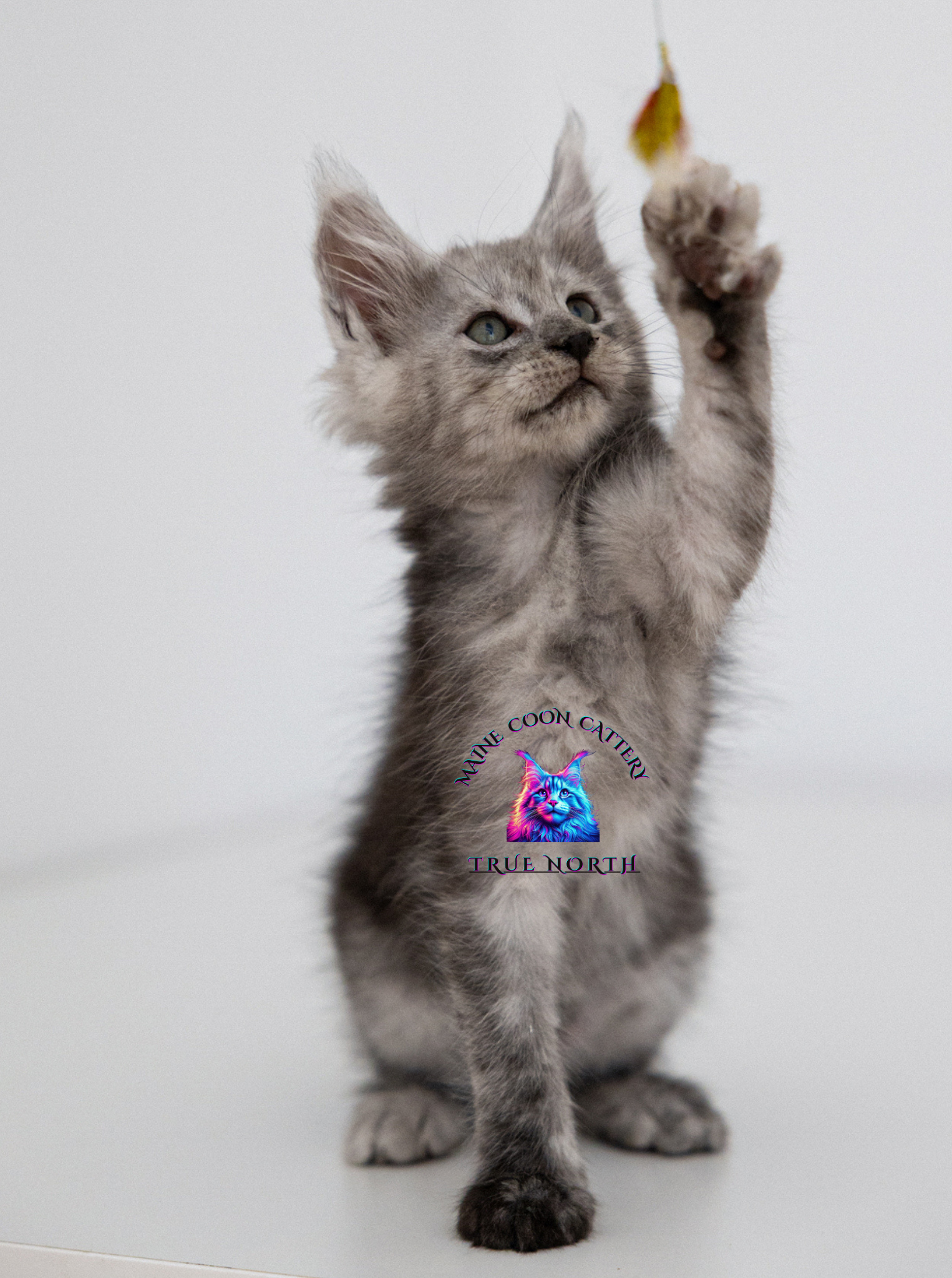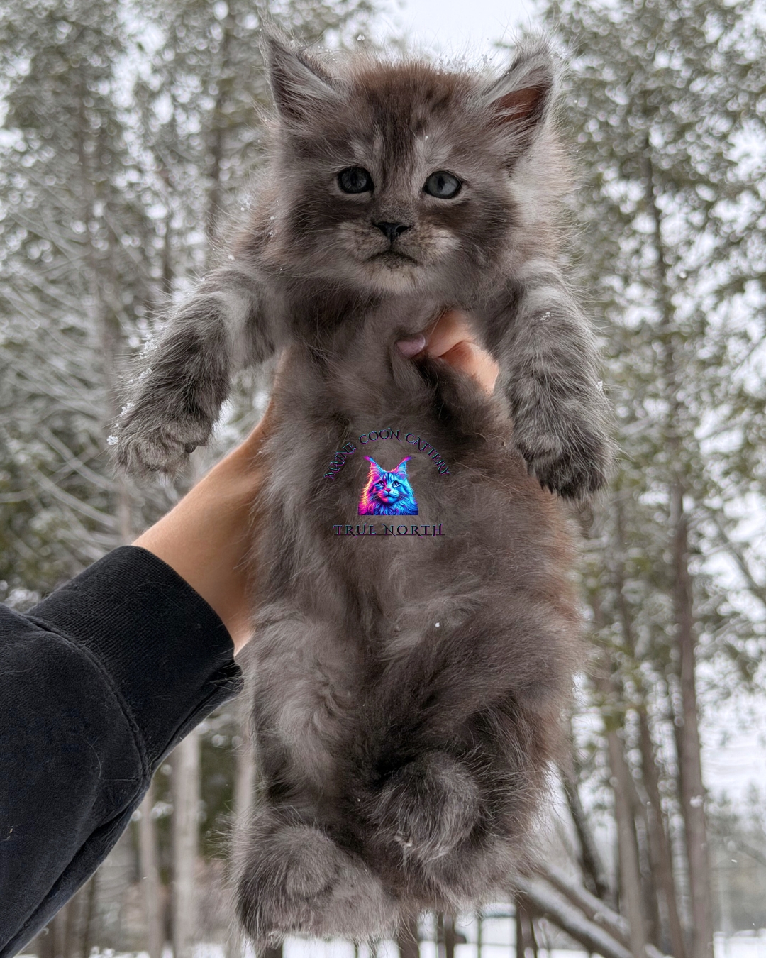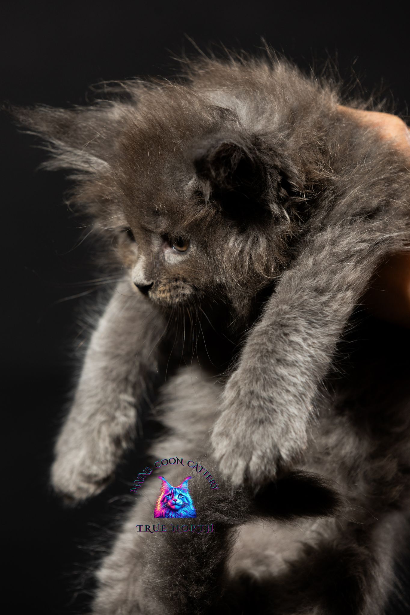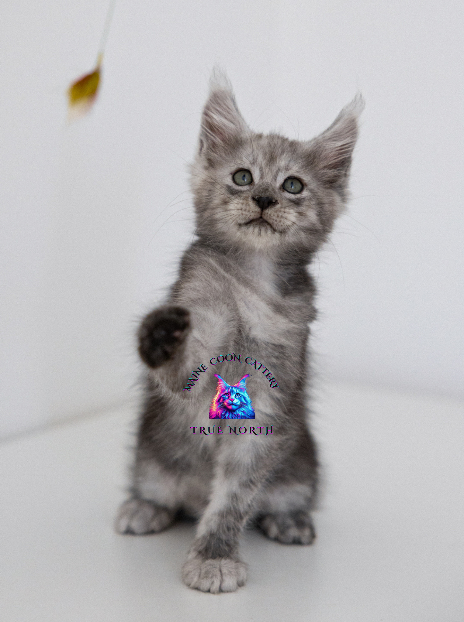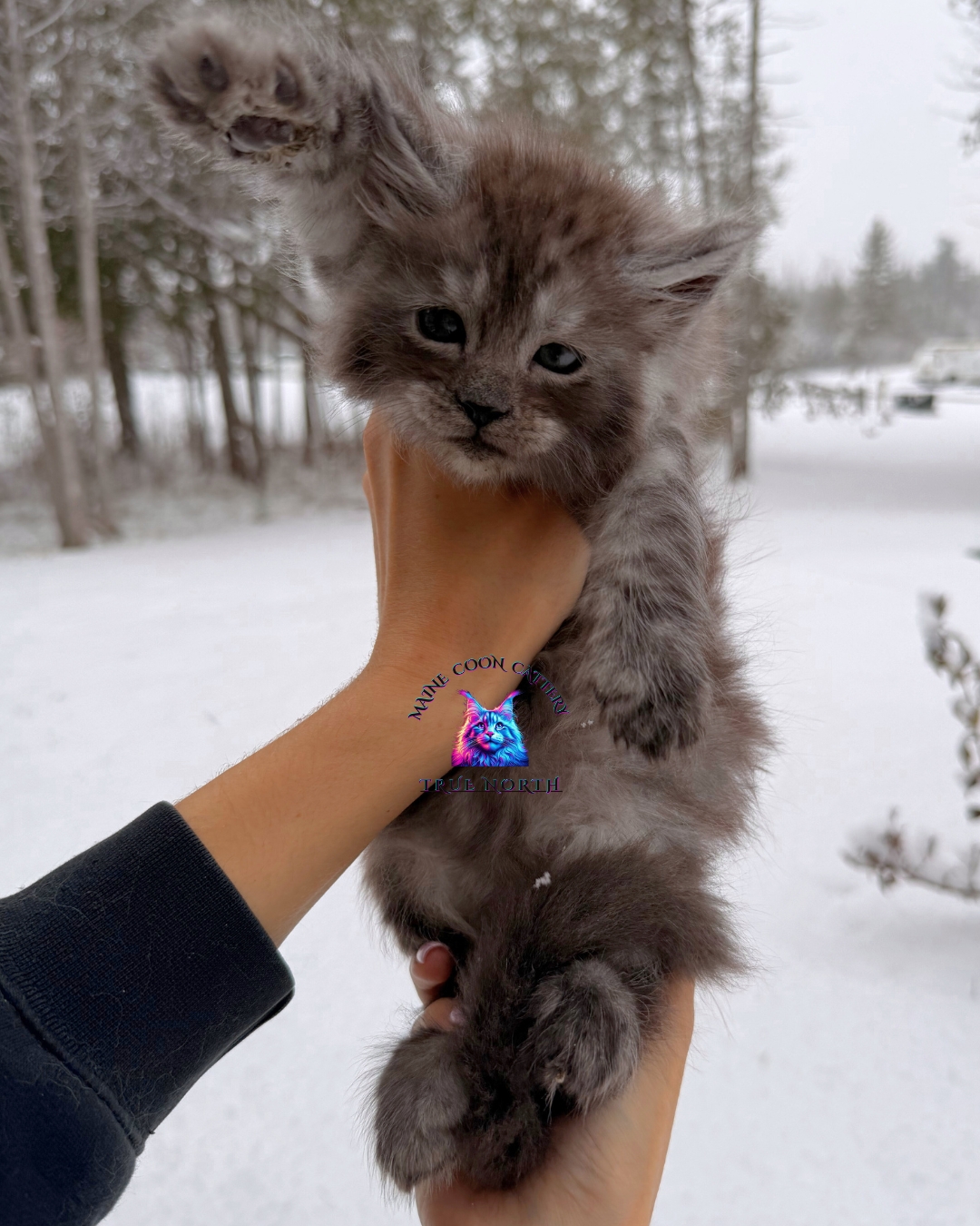Elvis Male Color — Solid Blue POLY (POL 7766, a) Born — 23 July, 2025. An extraordinary solid blue male kitten with a highly rare 7-7-6-6 polydactyl pattern — a truly unique combination that sets him apart from the rest.