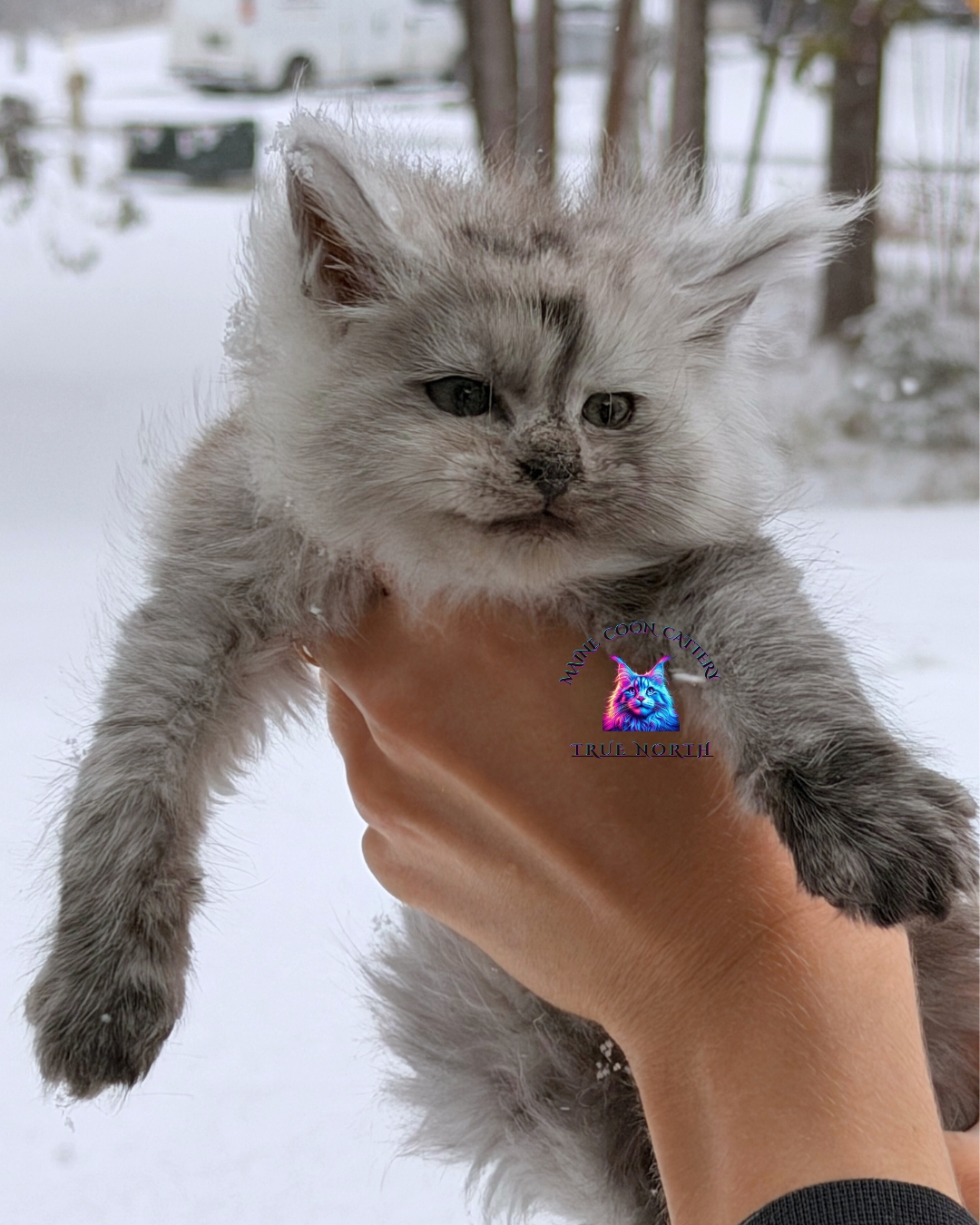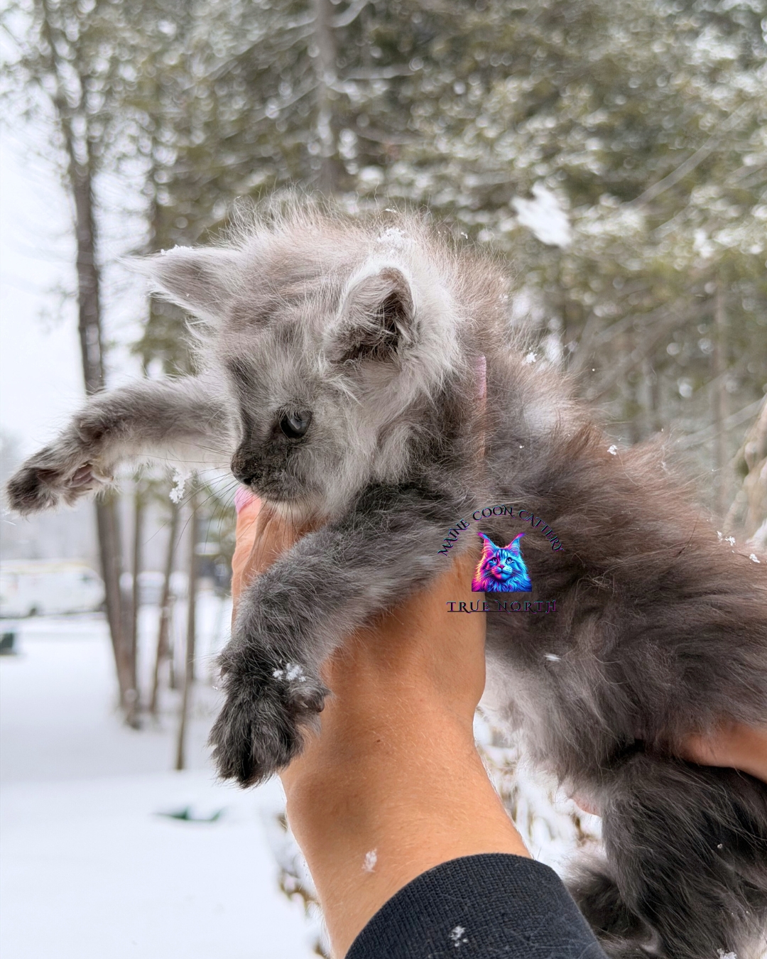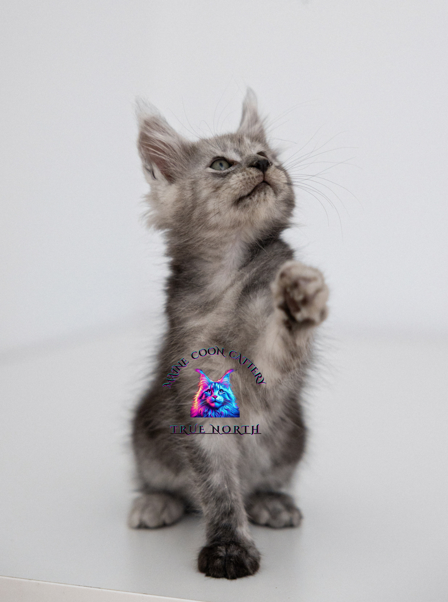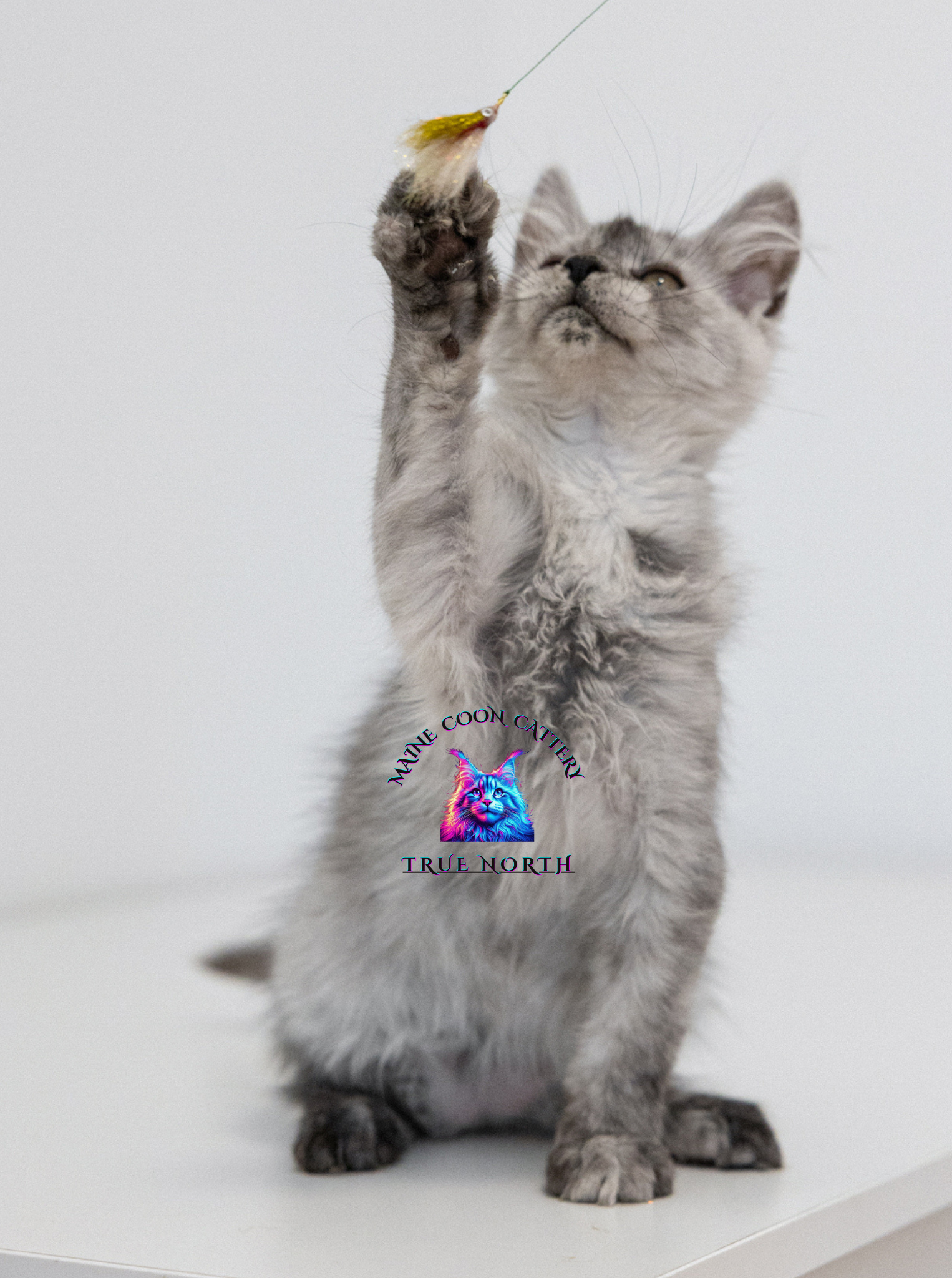 Elvis Male Color — Solid Blue POLY (POL 7766, a) Born — 23 July, 2025. An extraordinary solid blue male kitten with a highly rare 7-7-6-6 polydactyl pattern — a truly unique combination that sets him apart from the rest.