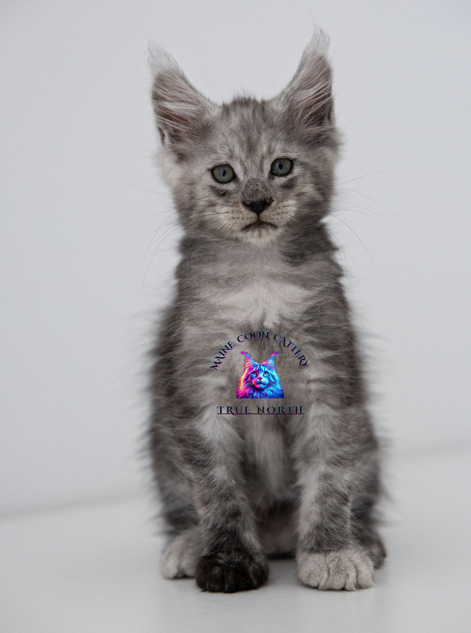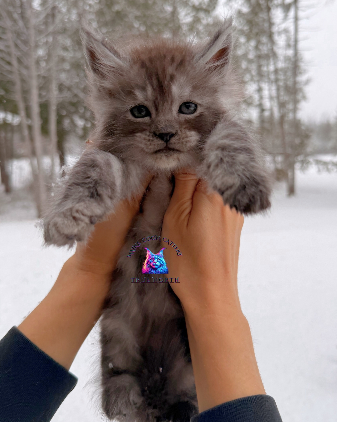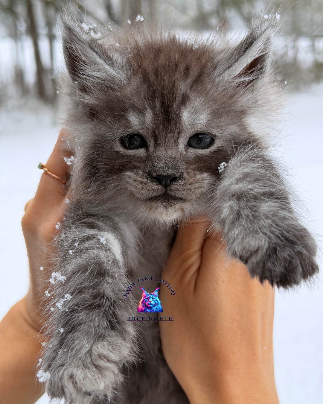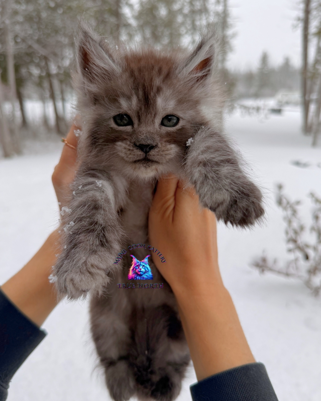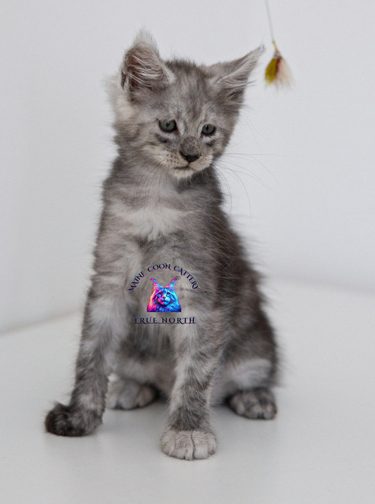 Elvis Male Color — Solid Blue POLY (POL 7766, a) Born — 23 July, 2025. An extraordinary solid blue male kitten with a highly rare 7-7-6-6 polydactyl pattern — a truly unique combination that sets him apart from the rest.
