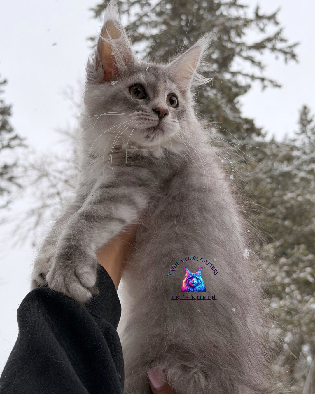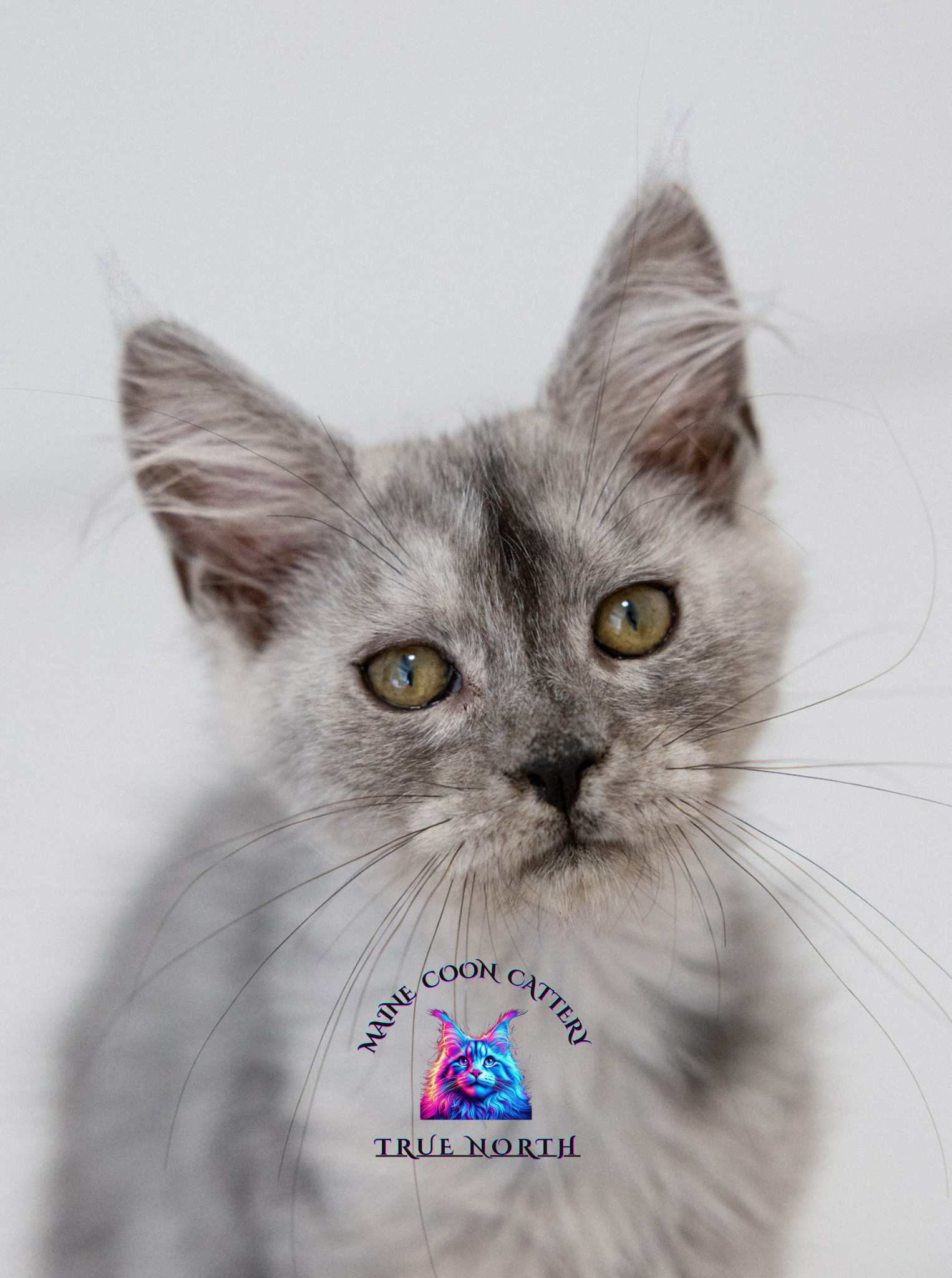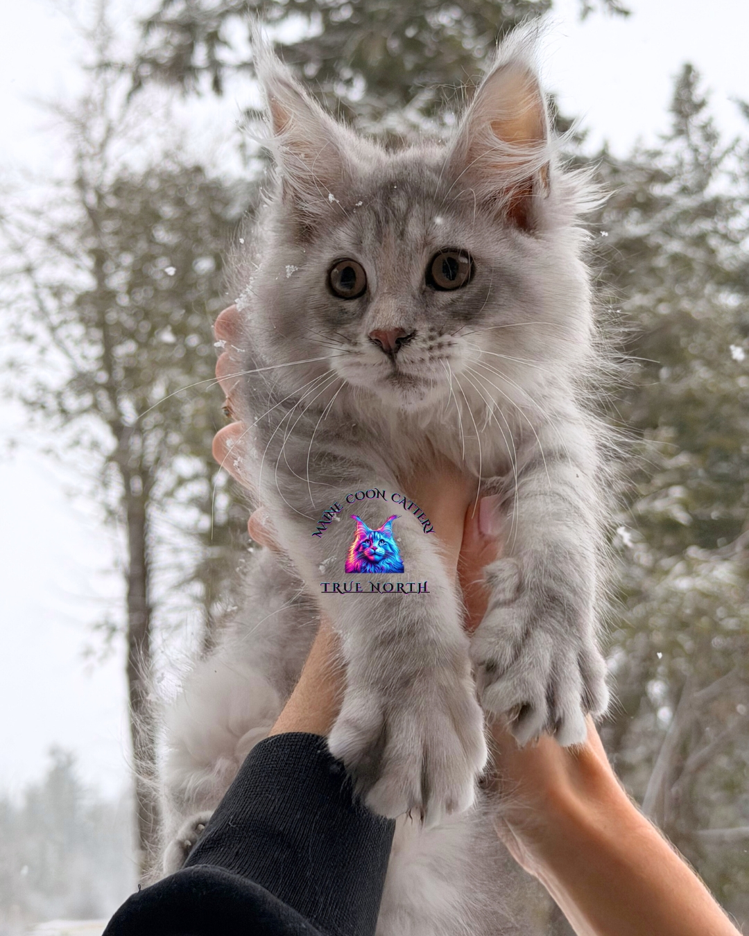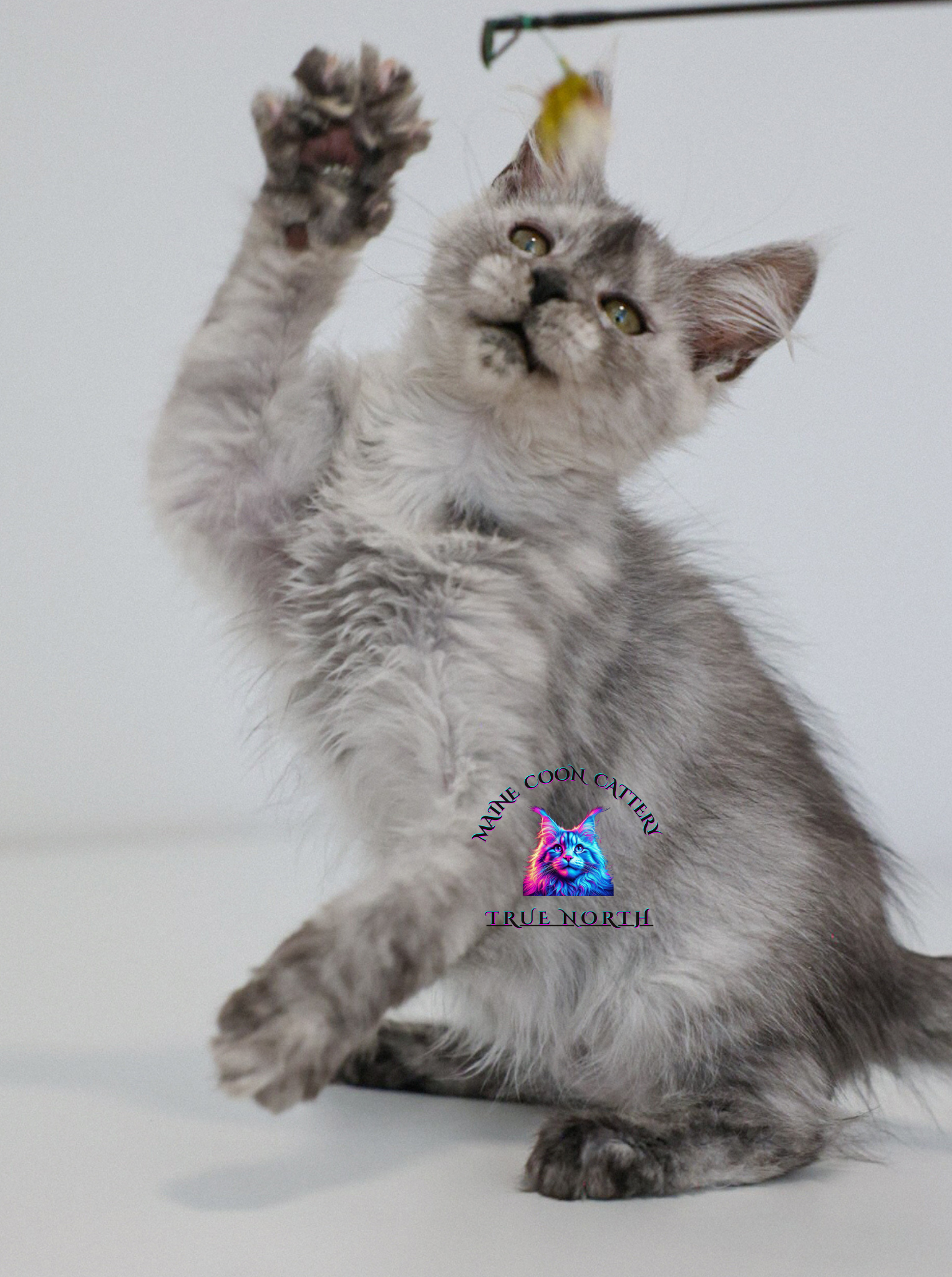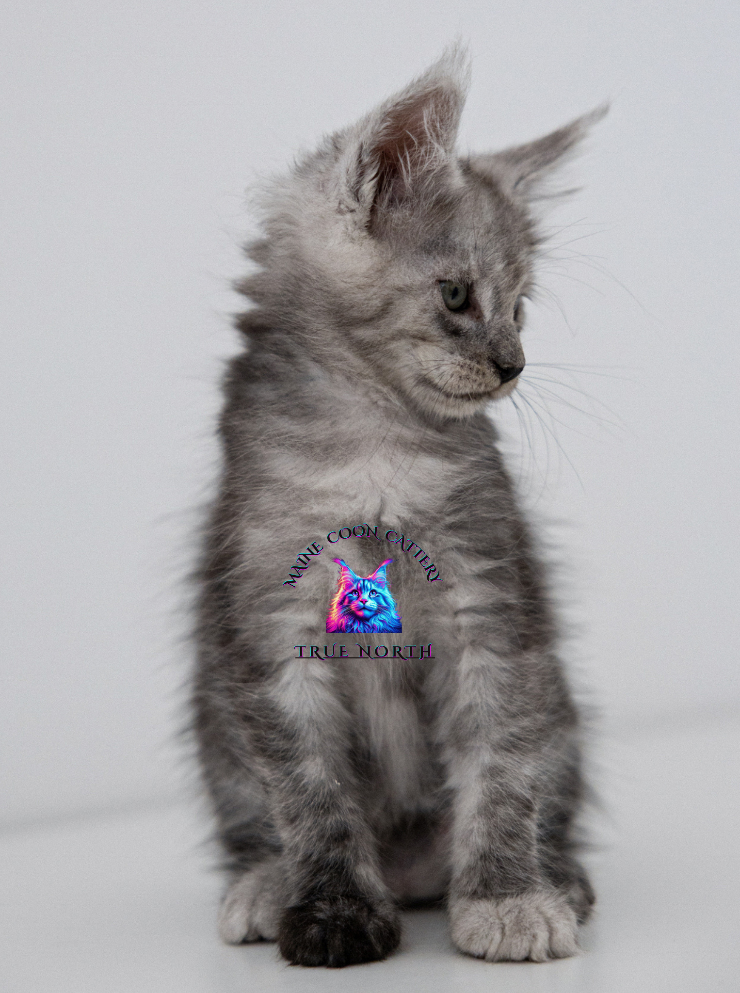 Elvis Male Color — Solid Blue POLY (POL 7766, a) Born — 23 July, 2025. An extraordinary solid blue male kitten with a highly rare 7-7-6-6 polydactyl pattern — a truly unique combination that sets him apart from the rest.
