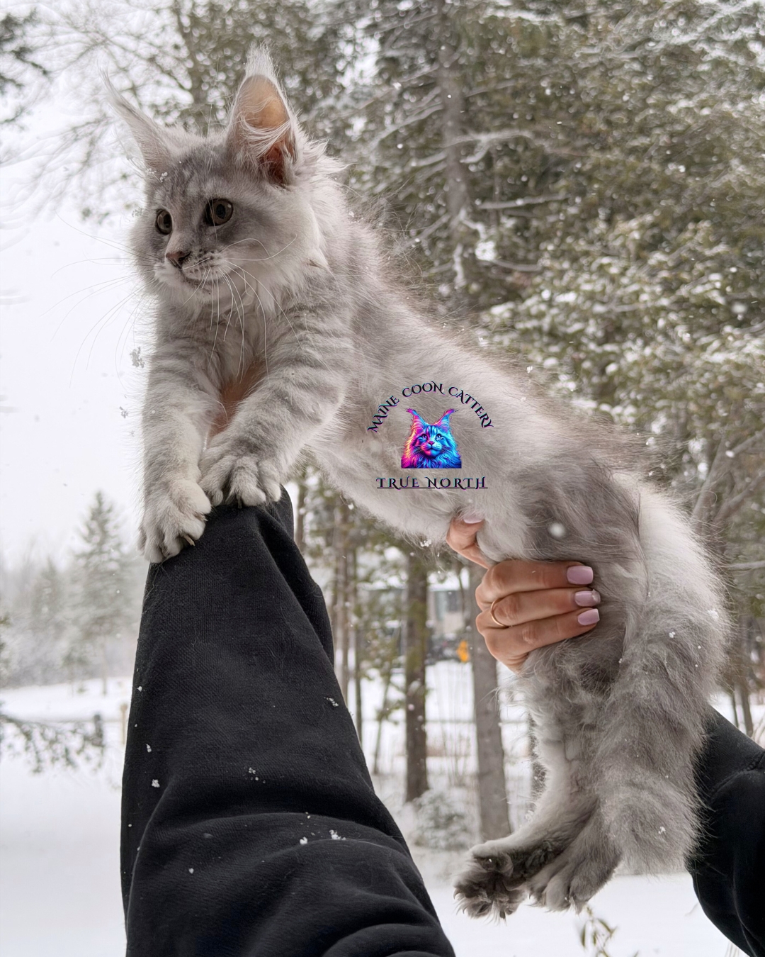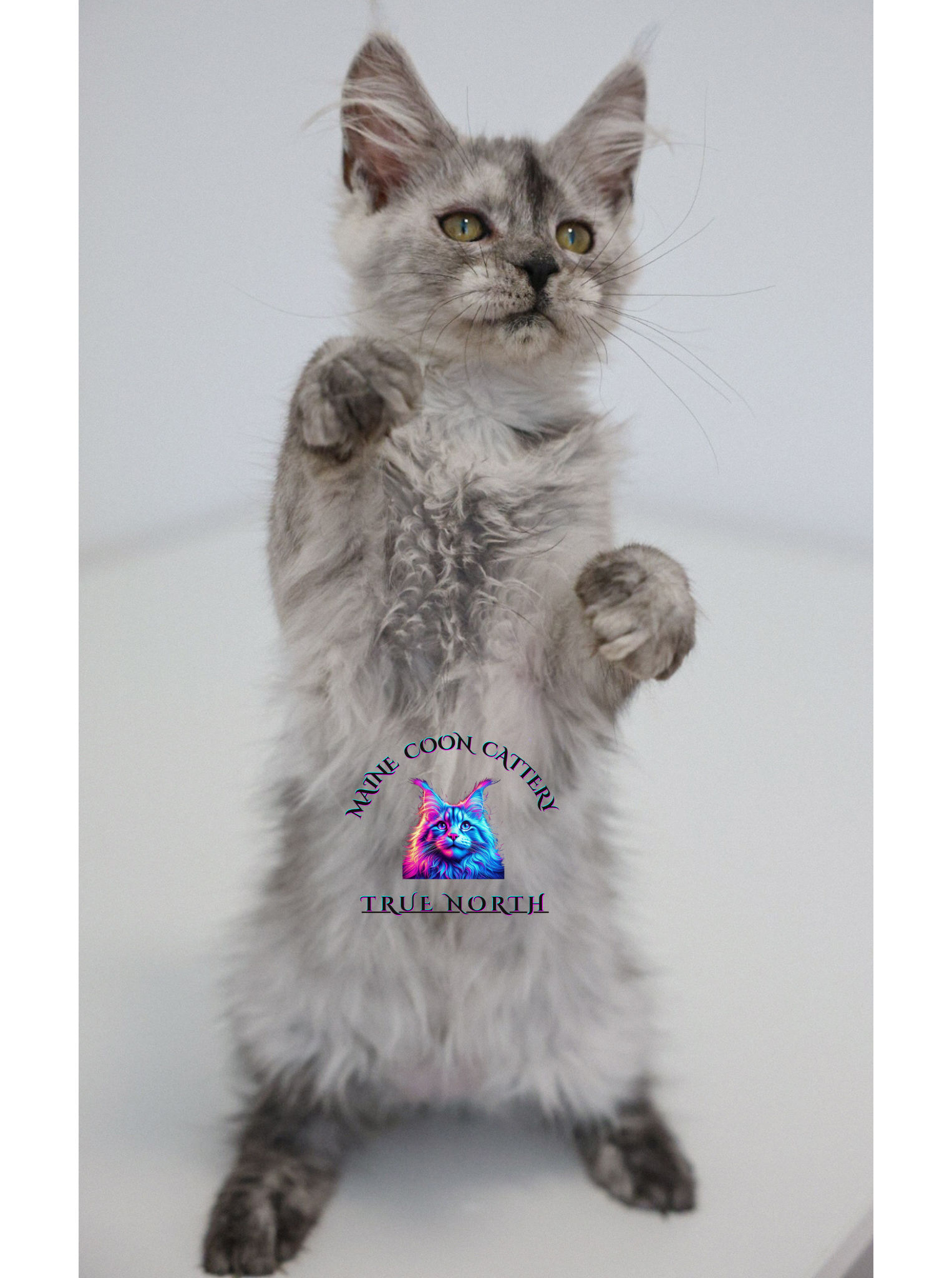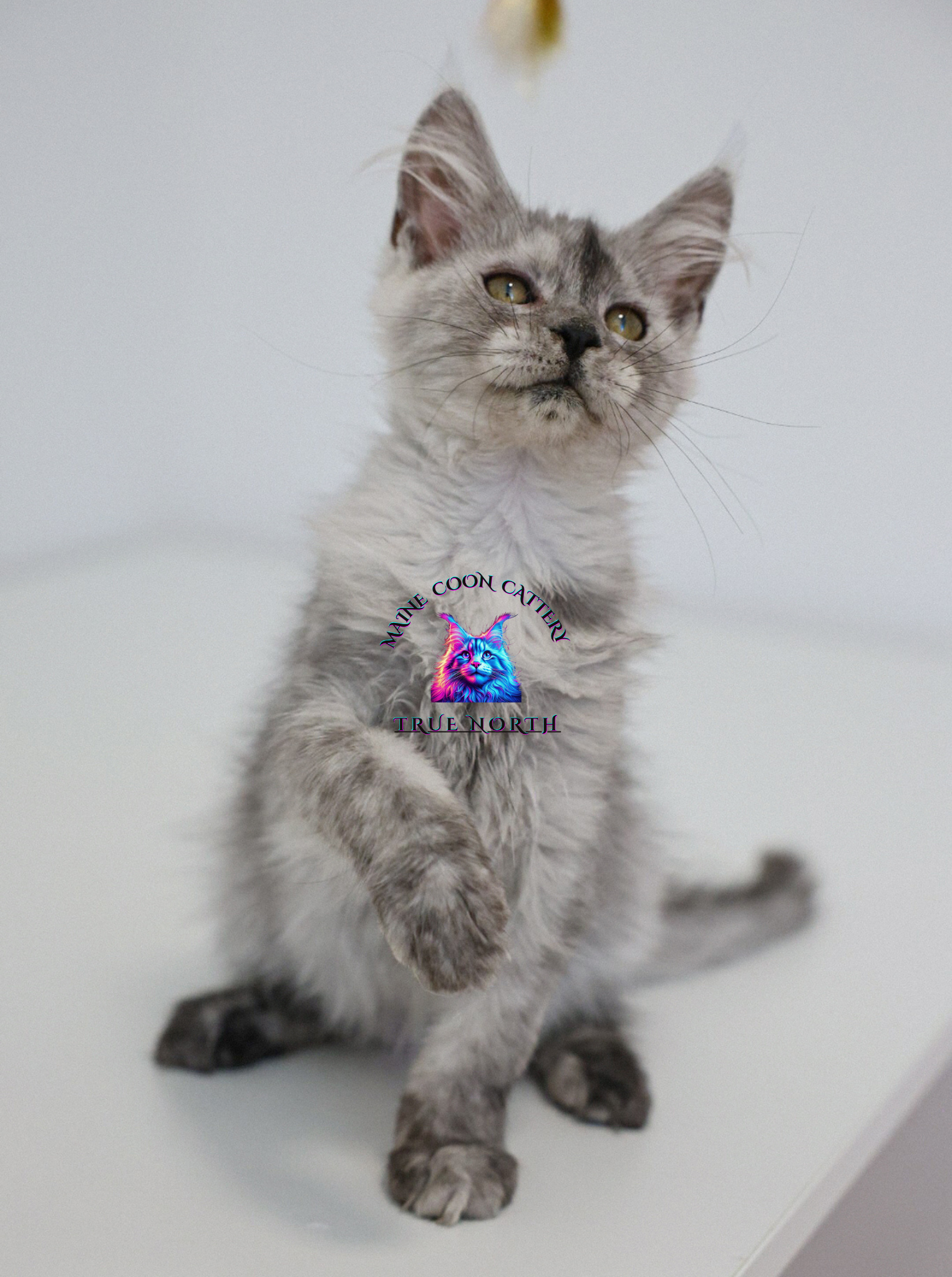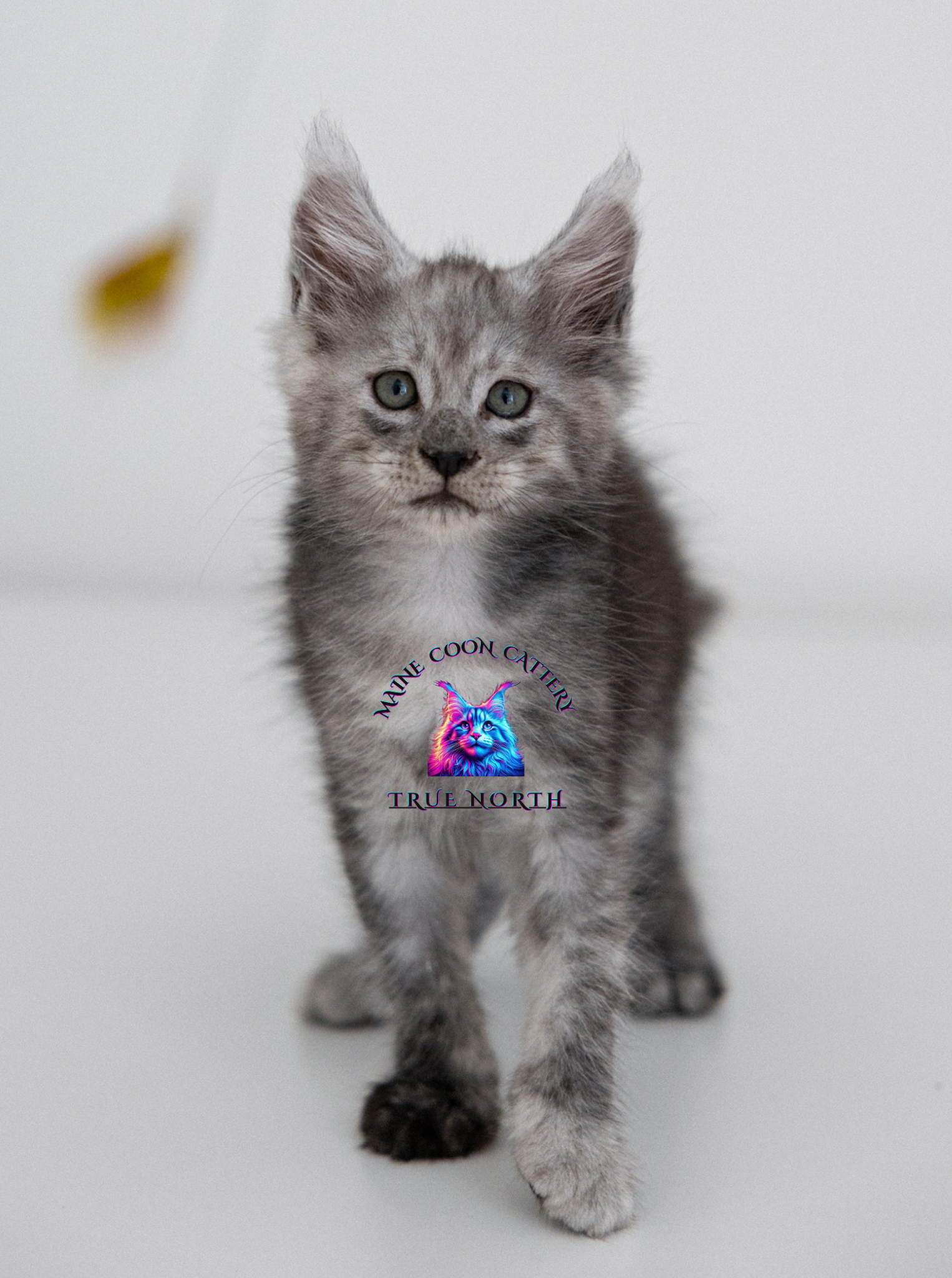 Elvis Male Color — Solid Blue POLY (POL 7766, a) Born — 23 July, 2025. An extraordinary solid blue male kitten with a highly rare 7-7-6-6 polydactyl pattern — a truly unique combination that sets him apart from the rest.