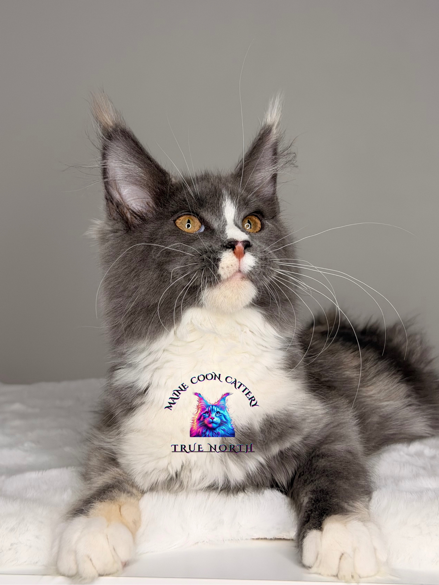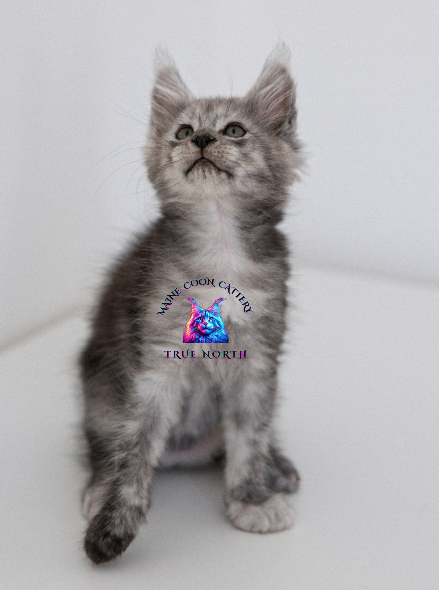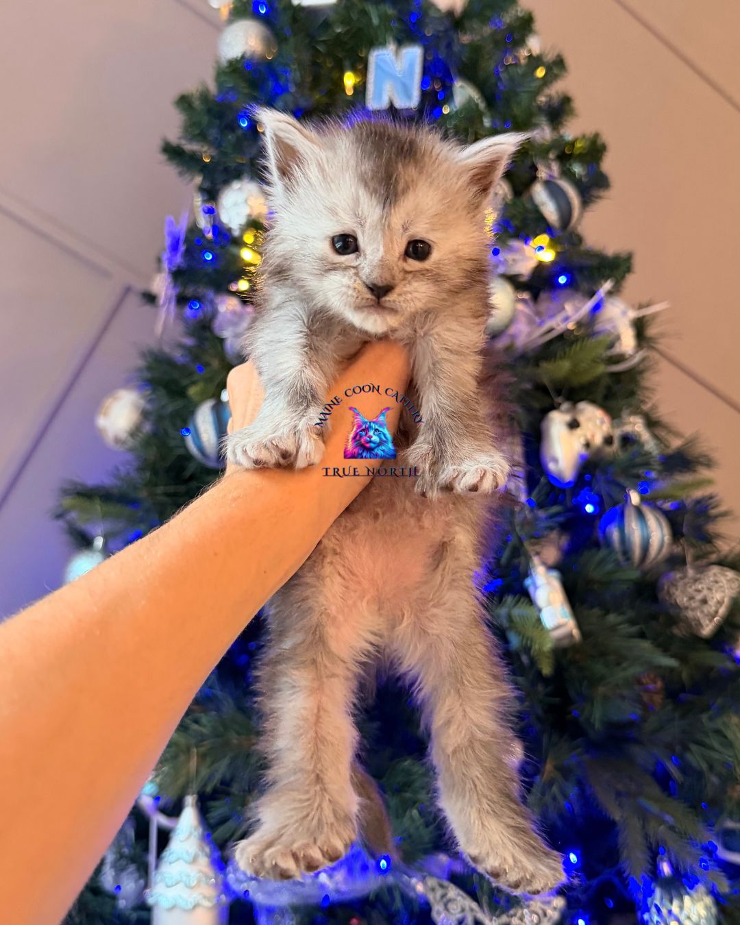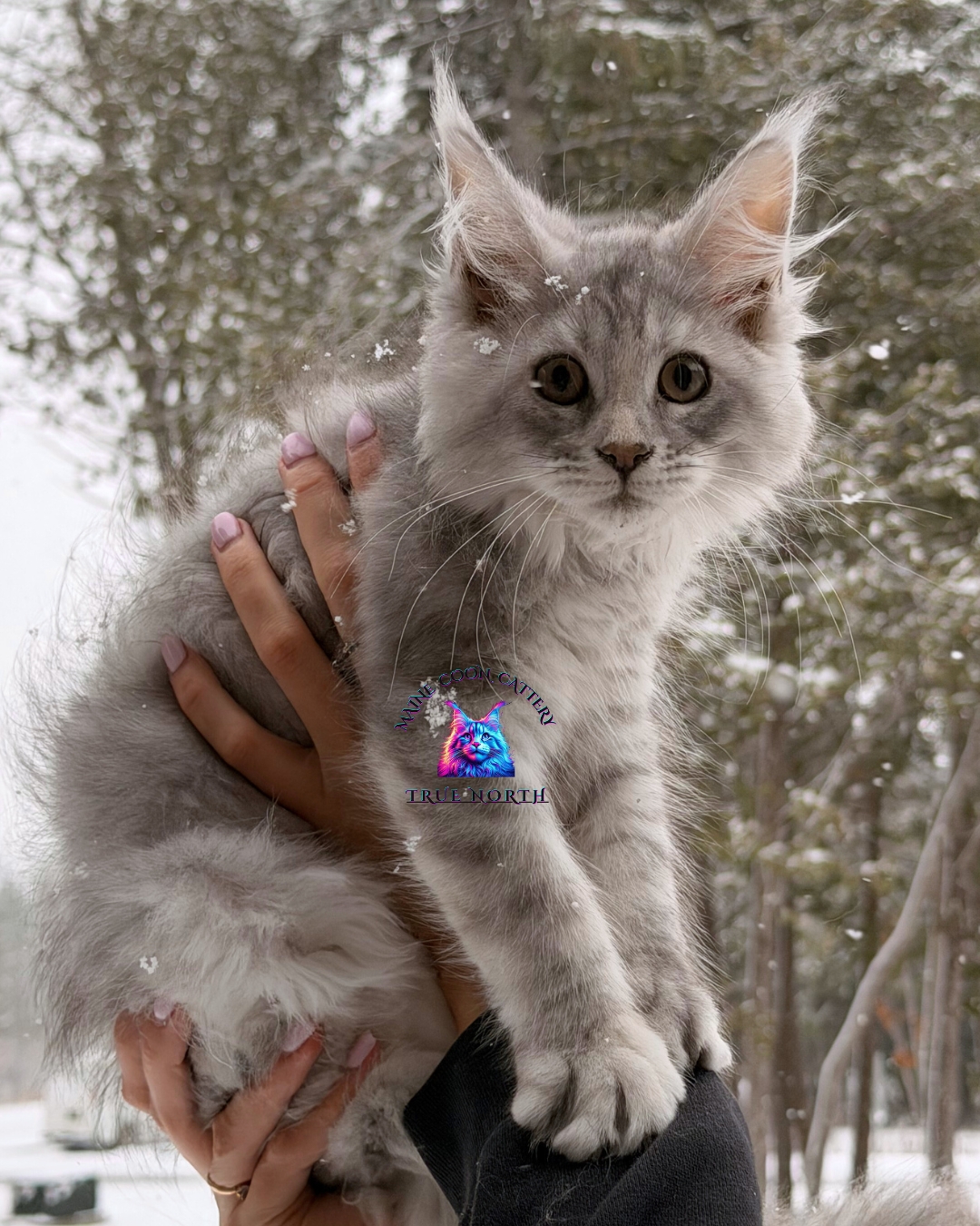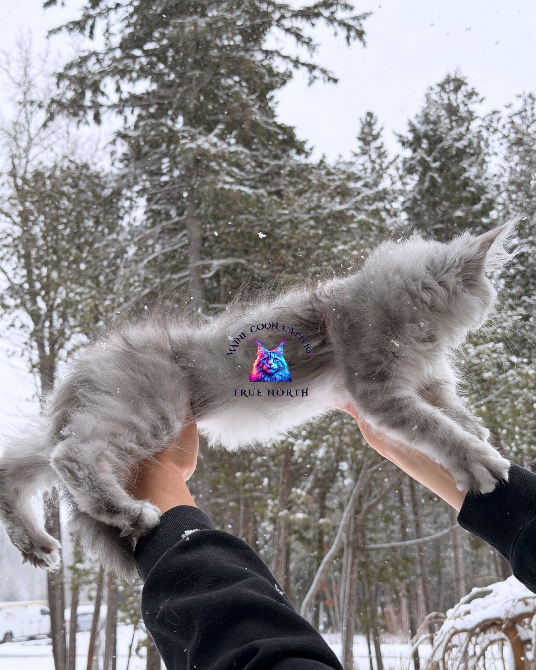 Elvis Male Color — Solid Blue POLY (POL 7766, a) Born — 23 July, 2025. An extraordinary solid blue male kitten with a highly rare 7-7-6-6 polydactyl pattern — a truly unique combination that sets him apart from the rest.