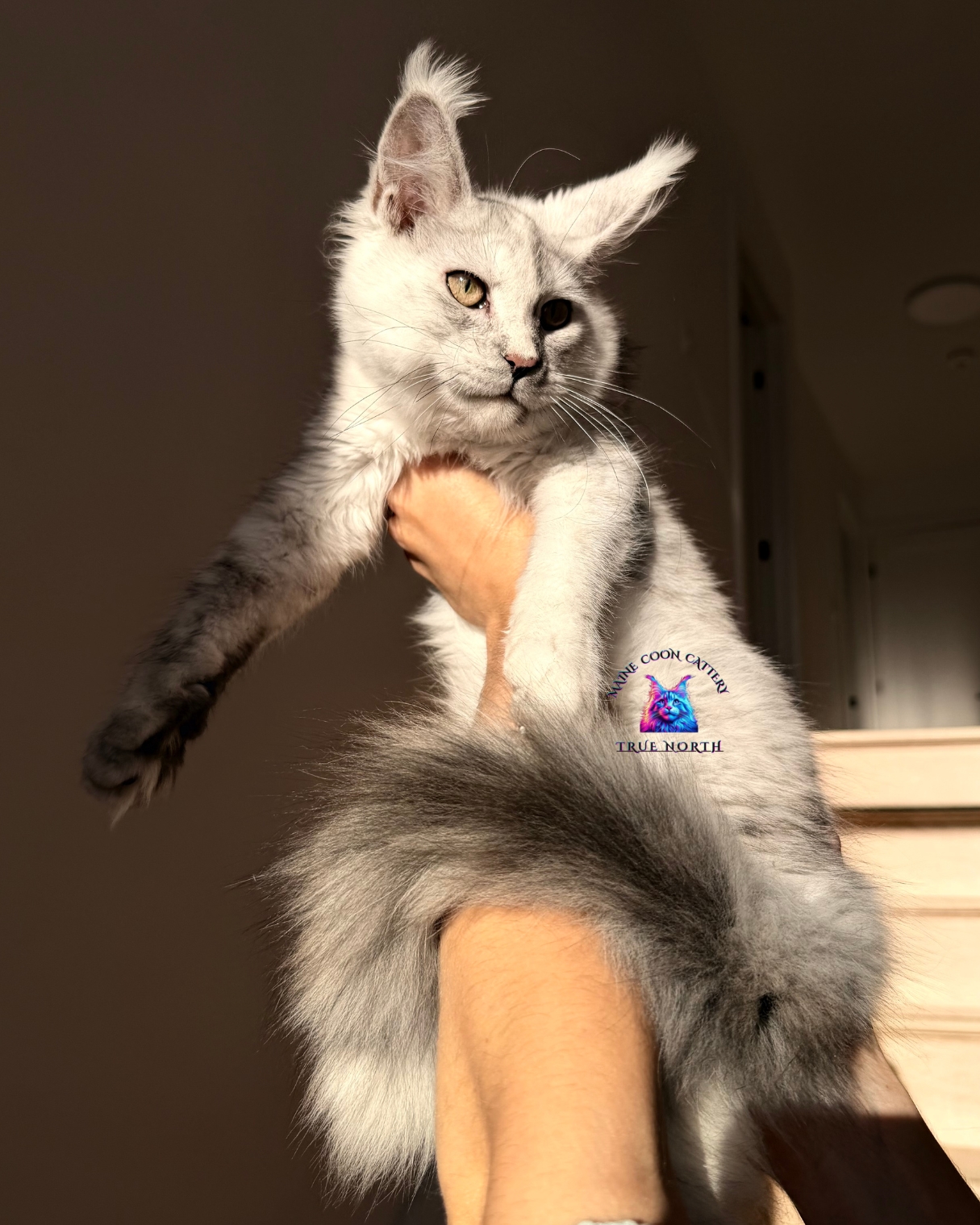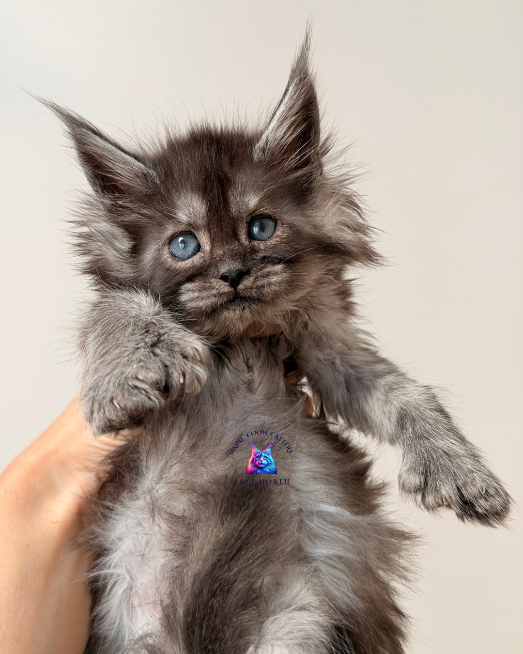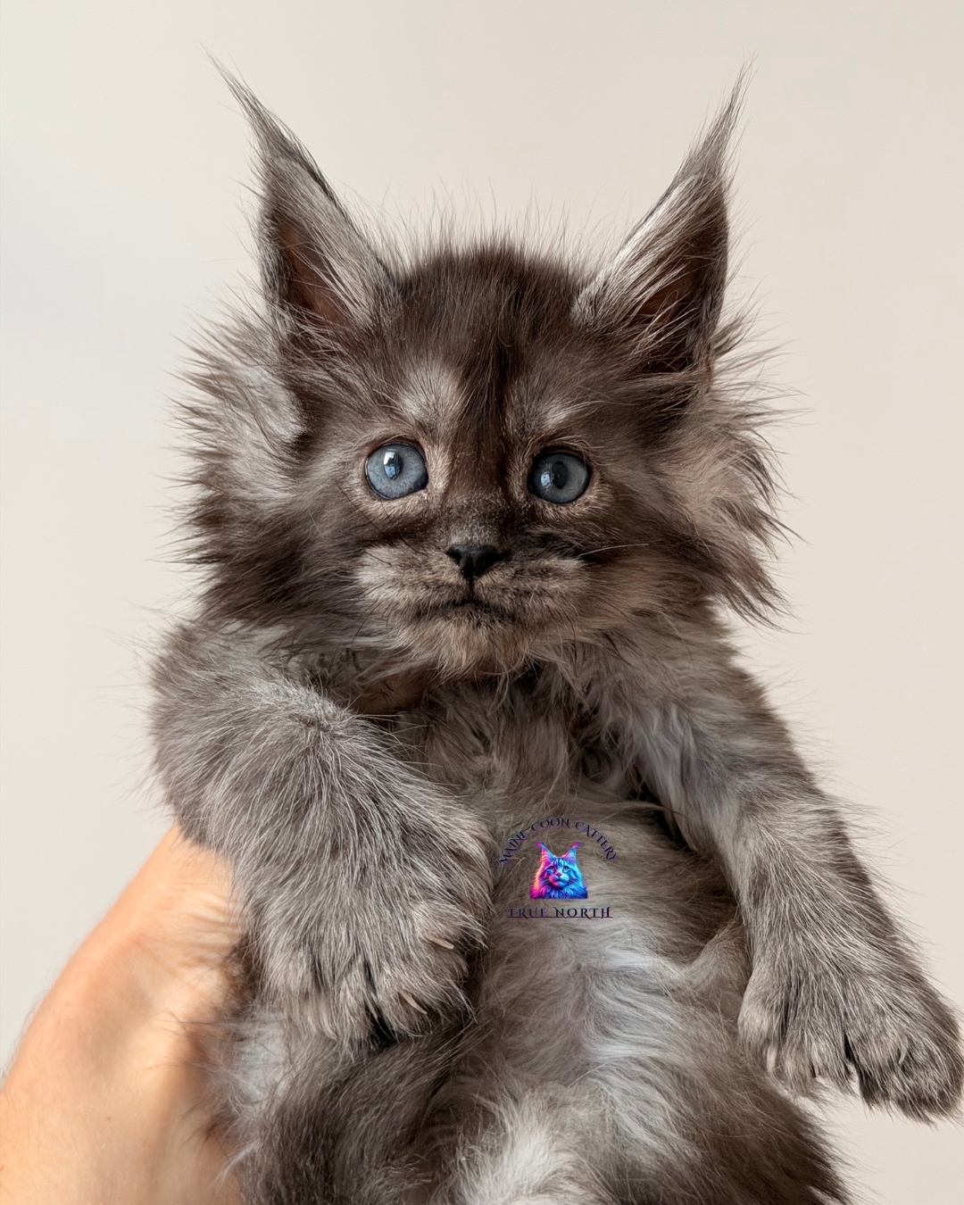 Simba Male Color — Red Smoke POLY (POL7766, ds) Born — 07 Aug, 2025. An extraordinary red smoke male kitten with a highly rare 7-7-6-6 polydactyl pattern — a truly unique combination that sets him apart from the rest.Pet/Breeding